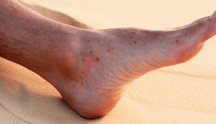 Dusk and dawn are also the moments that trigger a feeding frenzy among Utila’s sand fleas. The most common and least dangerous of all the organisms that people call “sand fleas” are actually crustaceans. So, they aren’t fleas or even insects. They’re in the same family as crabs and lobsters. People only call them “fleas” because they hop and jump. You might also hear them referred to as sand hoppers, beach fleas or beach hoppers. These creatures might cause red, itchy bumps on your skin, but the irritation usually goes away in a couple of days. The effect looks like this: