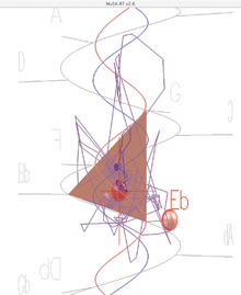 Software codeveloped by Elaine Chew yielded this visualization of a tonal analysis of P. D. Q. Bach’s Fugue No. 6 from The Short-Tempered Clavier