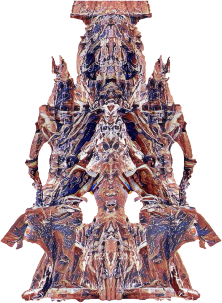 The artistic installation consists of three parts: a coiling serpent, a chimera, and a pagoda.