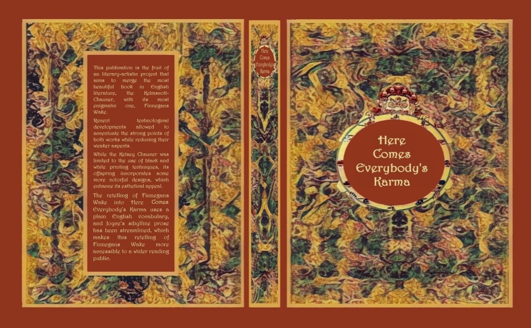Here Comes Everybody's Karma is a translation of Finnegans Wake from Joycean Gibberish into Vulgar English. It took me some time, but I've finally put in the effort to convert the print version into a Kindle book. Hereby I invite everyone who has been putting Joyce's masterpiece aside as an unreadable Moloch, to have a … Continue reading Kindle Launch of Here Comes Everybody’s Karma