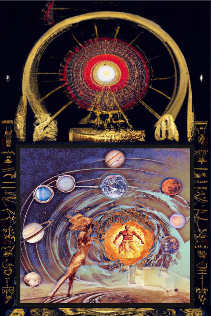 The theme of the opera that forms part of this project, revolves around a comparison between the cyclic nature of human civilization and that of our solar system. The music is derived from a sonorization of the electromagnetic waves emitted by the main celestial bodies that form our solar system. These chaotic sounds were then processed through a synclavier in order to produce some melodies that make sense to the human ear. In these compositions, every sound has a value, and every action is part of the universal diapason, a colossal vibration that makes energy rather than reflecting it.